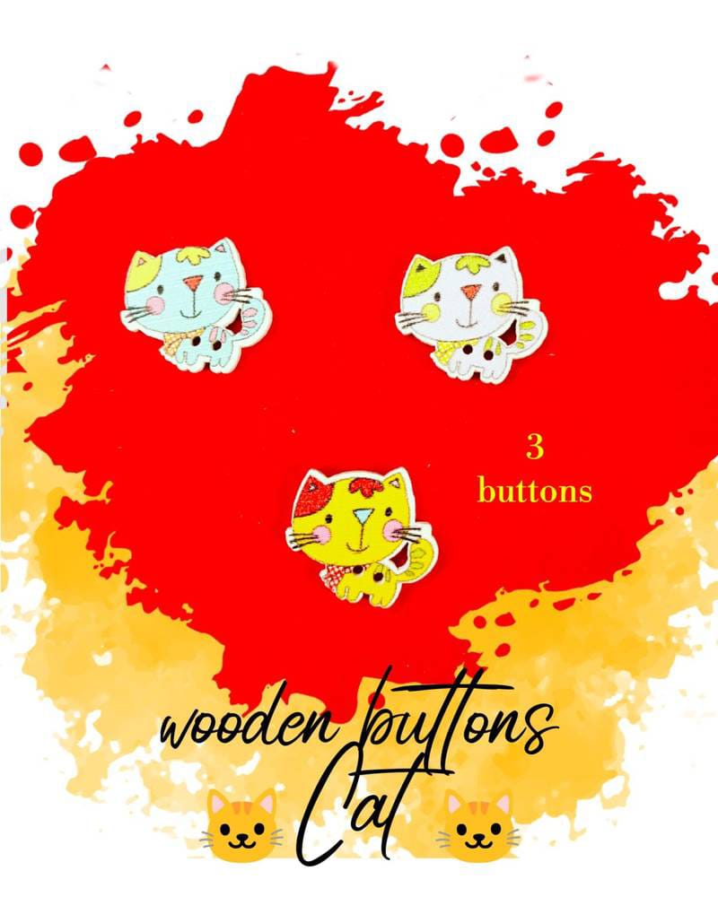 Cat Wooden Buttons Pakistan collection by Hamayl Store adds cuteness and creativity to kids clothing and DIY craft projects. This adorable 3 pieces set of cat-shaped wooden buttons features colorful and playful designs that children love.