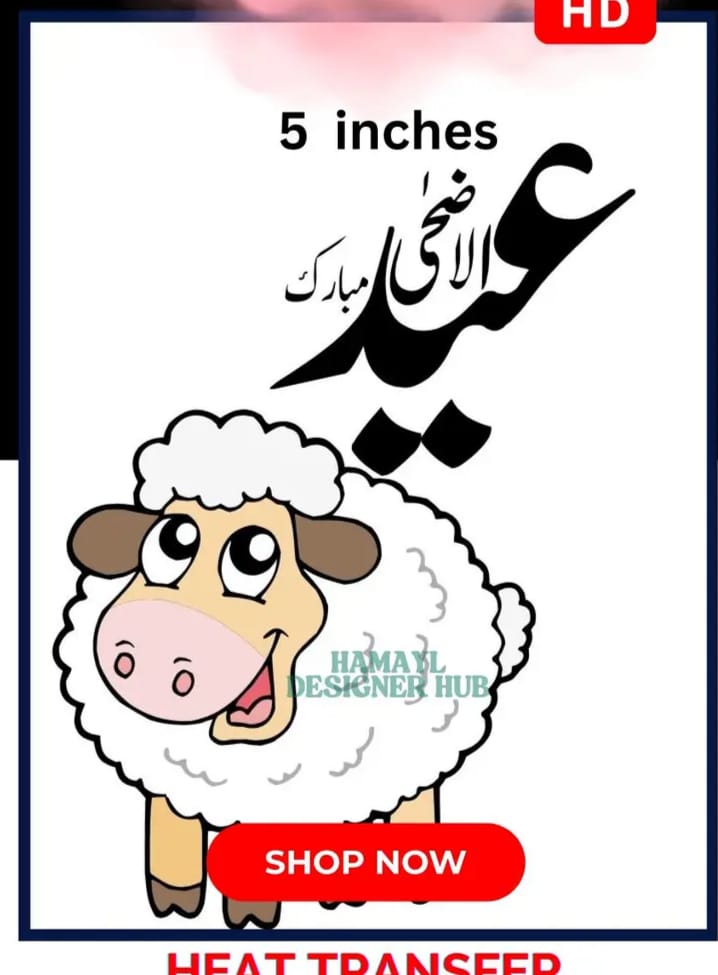 Eid ul Adha Iron On Patch is a premium 5 inch heat transfer patch designed for Eid ul Adha celebrations. This Eid ul Adha Iron On Patch features a cute sheep along with bold Urdu “Eid Mubarak” calligraphy, making it a perfect choice for festive clothing in Pakistan.