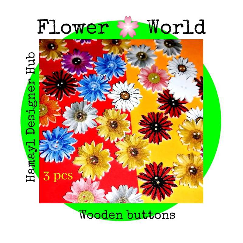 Floral Wooden Buttons Pakistan collection by Hamayl Store brings vibrant colors and elegant flower designs to kids clothing and creative craft projects. This Flower World wooden buttons set includes 3 beautifully detailed floral buttons that add charm and freshness to any outfit.