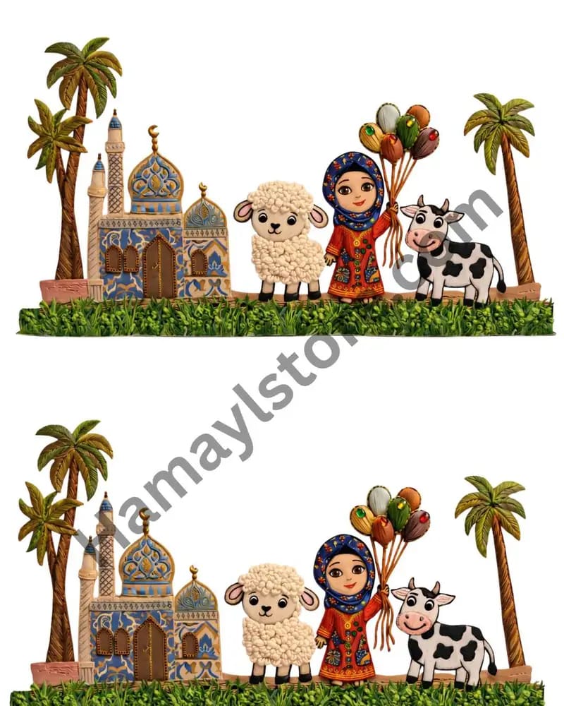Girl Eid Village Scene Border – 22 Inch Premium Eid ul Adha Heat Transfer Patch