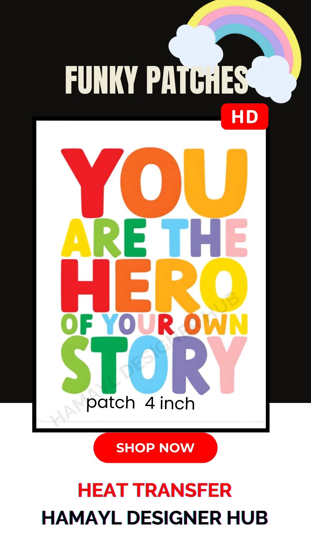 The You Are The Hero Iron On Patch 2026 edition is a colorful motivational heat transfer design created to inspire confidence and positivity. Featuring bold typography with vibrant tones, this patch transforms simple clothing into expressive fashion pieces. It is perfect for kids shirts, hoodies, and creative DIY projects.