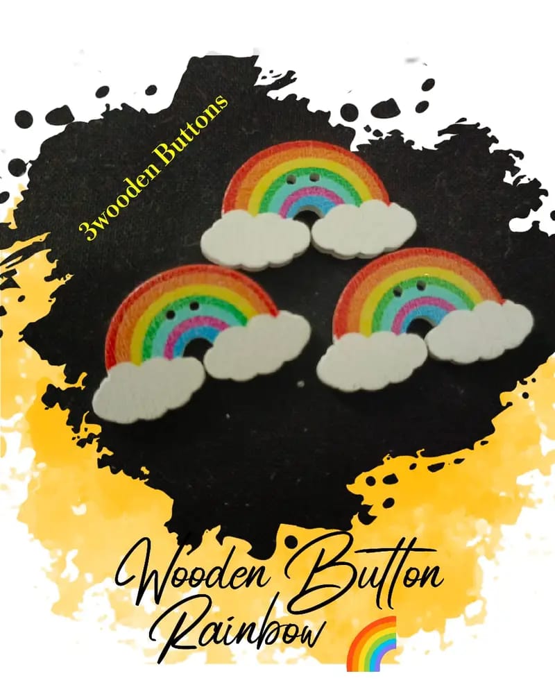 Rainbow Wooden Buttons Pakistan by Hamayl Store are premium decorative sewing buttons designed with vibrant rainbow and cloud shapes. This 3-piece set adds a colorful, cheerful, and trendy touch to kids outfits and DIY craft projects.